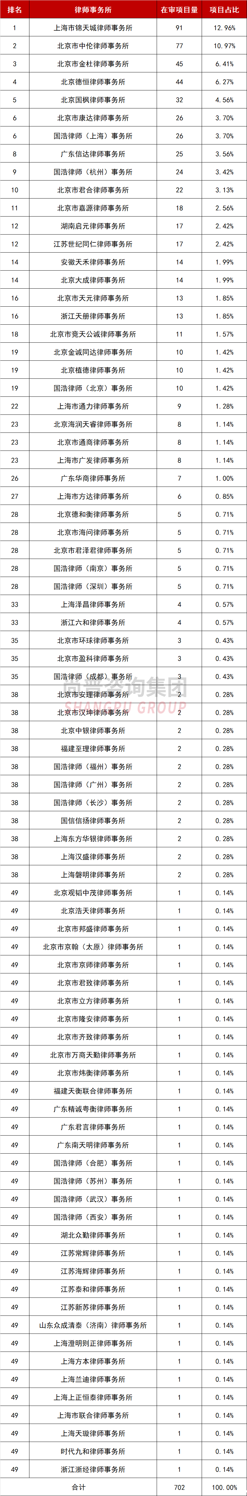 IPO储备项目哪家强?A股最新在审项目量排名(券商/会所/律所/)