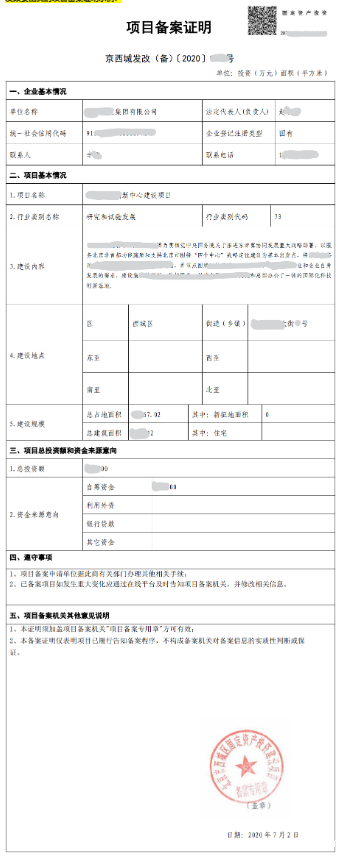 发改委出具的项目备案证明示例: