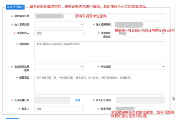 (2)申请单位情况:属于证照证载内容的,按照证照内容进行填报;其他按照企业实际情况填写。