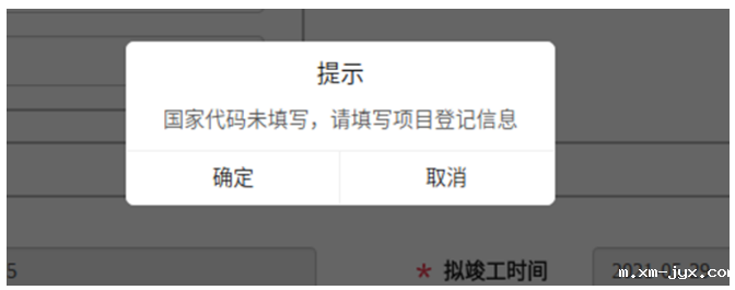 (1)国家代码:已有国家代码的项目,填写此项,后续项目的国家代码将与北京市代码进行关联。注意同一企业申请的不同项目,不能共用一个国家代码;无国家代码的,暂不填写,待其他申报信息填写完毕后,点击下一步,出现下图提示框,点击“确定”,填写完弹出的项目单后,点击“提交”按钮,系统会自动赋国家码。(国家代码申请项目单中的审核备案类型请选择备案。)