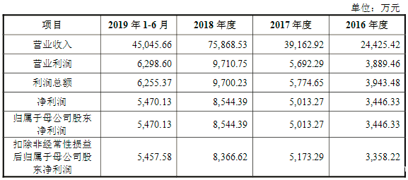 2016年至2019年1-6月,中岩大地营业收入稳定增长,分别为2.44亿、3.92亿元、7.59亿元和4.50亿元;扣非后归母净利润数据也随之逐年上涨,分别为3358.22万元、5173.29万元、8366.62万元和5457.58万元。