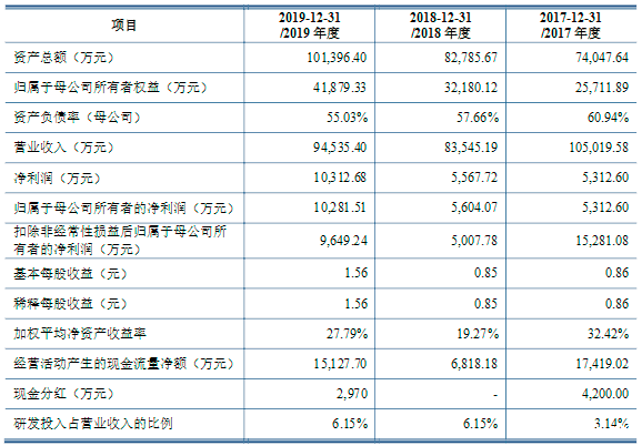 2016年至2019年,固德威营业收入分别为4.25亿元、10.50亿元、8.35亿元、9.45亿元,2019年营业收入较2016年增幅为122.61%;同期,该公司的归母净利润分别为3106.94万元、5312.60万元、5604.07万元、1.03亿元,2019年归母净利润较2016年增幅为230.92%。