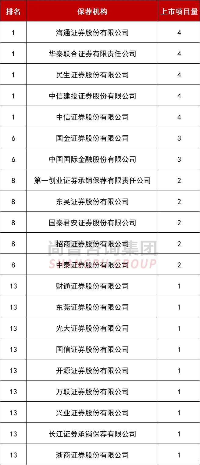 2024年1-6月,共有21家保荐机构承担了A股44家上市企业的保荐业务。