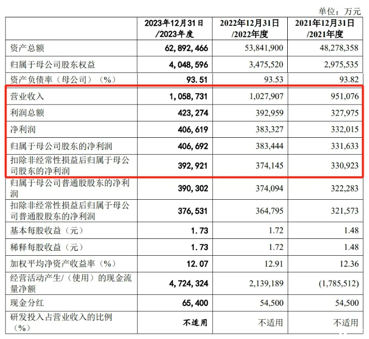 东莞银行无控股股东及实际控制人,其第一大股东为东莞市财政局,持股比例为21.16%。2021年至2023年,东莞银行实现营业收入分别为95.11亿元、102.79亿元和105.87亿元,实现扣非后归母净利润分别为33.09亿元、37.41亿元和39.29亿元。东莞银行业绩逐年增长,但其各项增速均呈现全面下降之势。