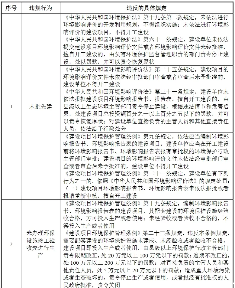 1、公司及其子公司、分公司部分项目存在未批先建、未办理环保设施竣工验收先进行生产、超出环评批复产能生产的情形;