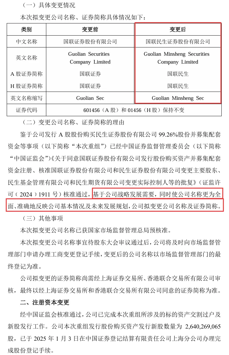 2025年1月13日,国联证券公告称,公司中文名称拟变更为“国联民生证券股份有限公司”,A股证券简称拟变更为“国联民生”。