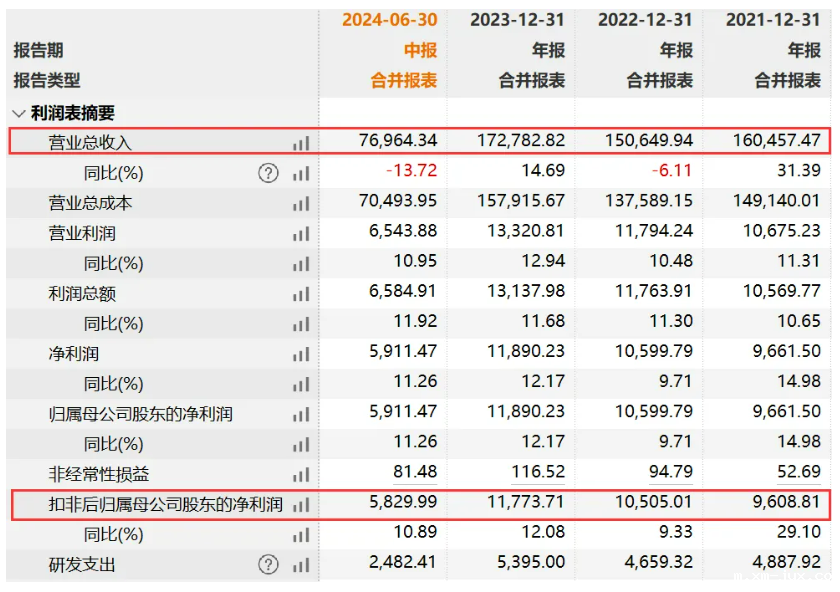 2021年至2024年1-6月,亘古电缆的营业收入分别为16.05亿元、15.06亿元、17.28亿元和7.70亿元;扣非后归母净利润分别为9,608.81万元、1.05亿元、1.18亿元和5,829.99万元。