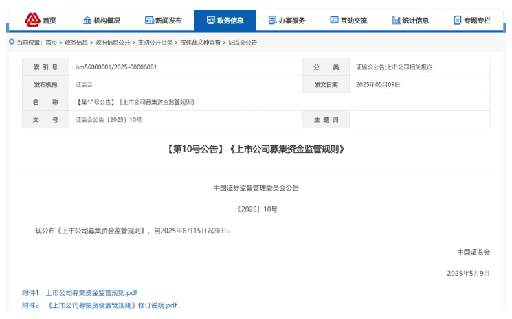 5月15日,证监会发布修订后的《上市公司募集资金监管规则》(以下简称《监管规则》),自2025年6月15日起施行。总体来看,《监管规则》本次修订主要在募集资金使用、募集资金安全性、募集资金使用效率、中介机构履职尽责等方面进行了强化。