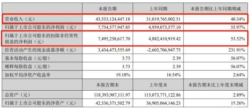 阳光电源在2025年上半年业绩显著增长,总营收达435.33亿元,同比提升40.34%;扣非后归母净利润为74.95亿元,涨幅为53.52%,展现出较强的盈利能力。
