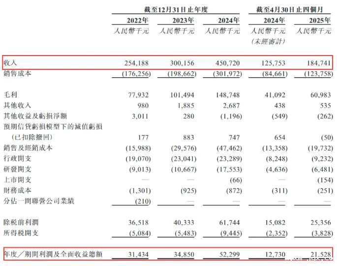 公司广泛的经销网络覆盖中国线下和在线渠道。截至2025年4月30日,公司与遍布中国30个省级行政区的38家经销商合作,覆盖680个零售点。2024年线上直销收入超1亿元人民币,2022年至2024年复合增长率约为166.6%。