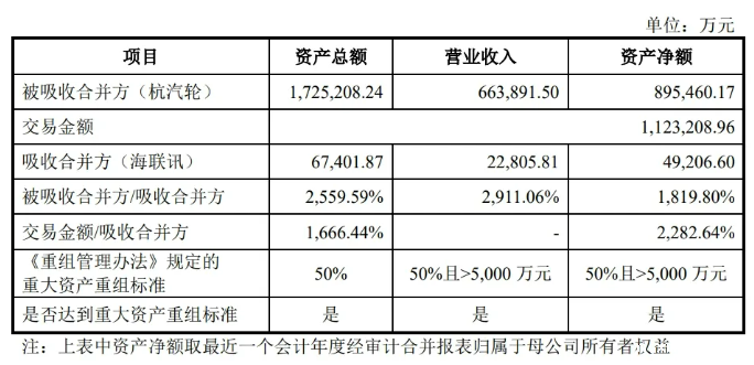 本次换股吸收合并中,海联讯吸收合并杭汽轮B的交易金额为112.32亿元。