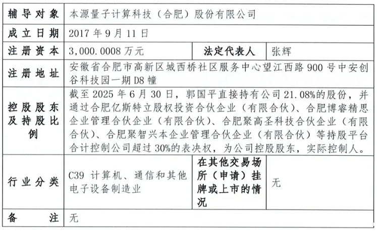 证监会官网显示,2025年9月15日,本源量子计算科技(合肥)股份有限公司(简称“本源量子”)正式启动IPO进程,辅导券商为中信建投。