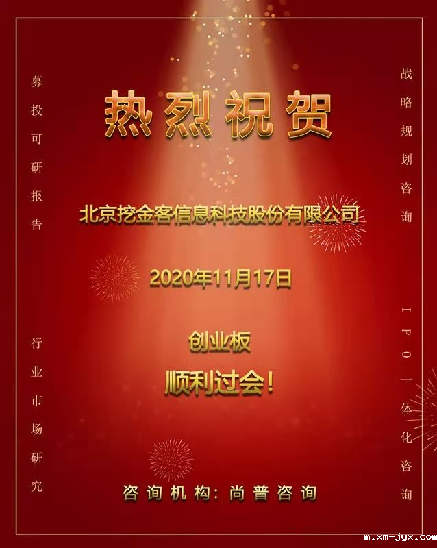 最后,再次祝贺北京挖金客信息科技股份有限公司顺利过会!