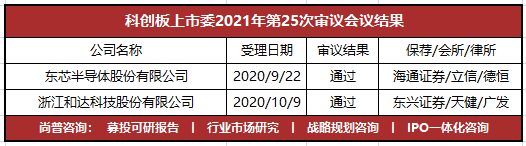 4月15日,科创板上市委举行了2021年第25次发审会议,审议了东芯半导体股份有限公司、浙江和达科技股份有限公司的IPO申请,两家均获通过。