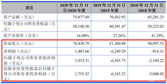 2018年至2020年,东芯股份营业收入分别为:5.1亿元、5.14亿元、7.84亿元,同期,扣非后归属于母公司股东的净利润分别为:-3,040.02万元、-6,343.22万元、1,755.32万元。