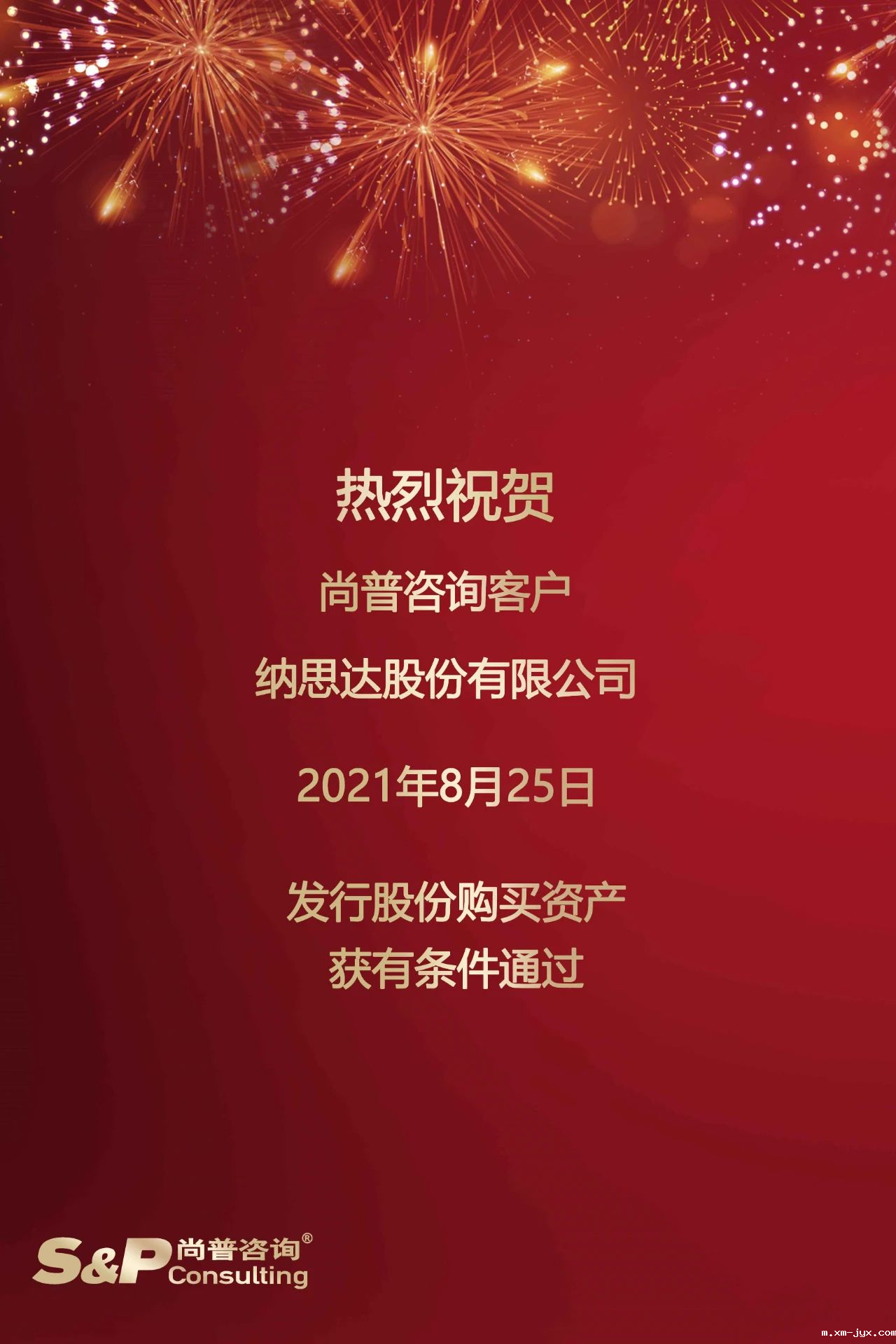 最后,再次祝贺纳思达股份有限公司发行股份购买资产获有条件通过!