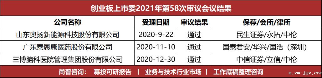 9月15日,创业板上市委举行了2021年第58次发审会议,共审议3家企业的IPO申请,3家均获通过。