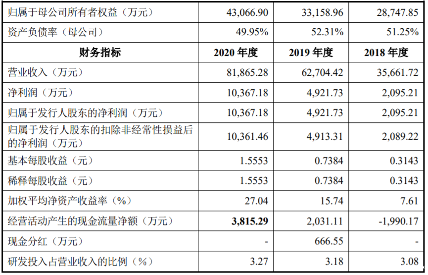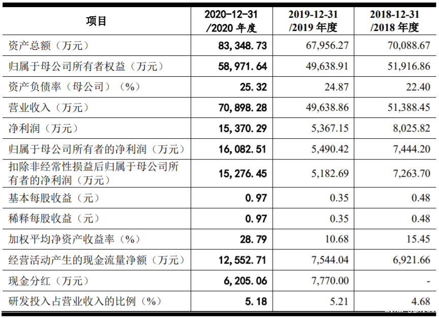 奥扬科技是专业从事低温绝热储运应用装备的研发、生产和销售的国家级高新技术企业。低温绝热储运应用装备采用双层真空绝热技术,为高真空技术产品,奥扬科技目前的低温绝热储运应用装备主要为车载LNG供气系统。公司与一汽解放青岛、陕重汽、成都大运、重汽济宁商用车、重汽济南卡车、重汽济南商用车、北京福田戴姆勒、陕汽商用车等知名整车厂商建立了稳定合作关系。本次发行的保荐人为民生证券股份有限公司,审计机构为永拓会计师事务所(特殊普通合伙),律师事务所为北京市中伦律师事务所。本次公开发行新股数量不超过2,221.8405万股,占发行后公司总股本的比例不25%。本次公开发行股票预计全部采用公开发行新股方式,不涉及公司股东公开发售股份。2018年至2020年,奥扬科技营业收入分别为:3.57亿元、6.27亿元、8.19亿元,同期,扣非后归属于母公司股东的净利润分别为:2,089.22万元、4,913.31万元、10,361.46万元。