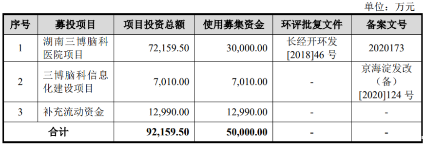 本次发行拟募集资金5亿元,将分别用于湖南三博脑科医院、三博脑科信息化建设以及补充流动资金。