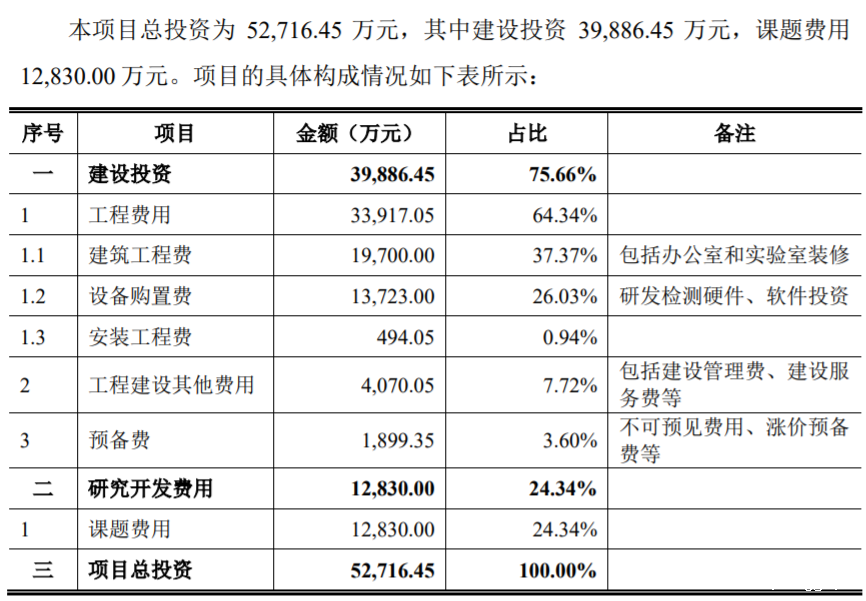 值得注意的是,南网科技用于建设投资的金额占募集资金总额的比例为75.66%;而用于研究开发的费用占比仅为24.34%。