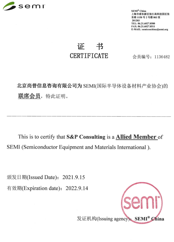 2021年9月15日,作为一家专业的独立第三方行业研究与投融资咨询机构,北京必威入口信息咨询有限公司成功加入SEMI(国际半导体产业协会),成为其联席会员。