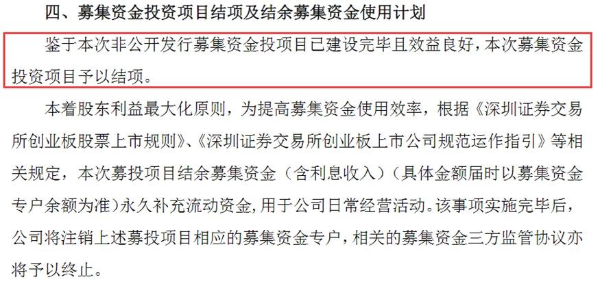 一般募投项目完成后公司还会剩下部分的节余资金,节余资金用于补流的或者其他情形,金额达到标准时需要过会审议,所以有的公司会把结项和结项后节余资金的适用一起过会和披露,如下图,如果金额不大,不用强制过会,也没有强制要单独公告披露,在后续的定期报告中进行披露。