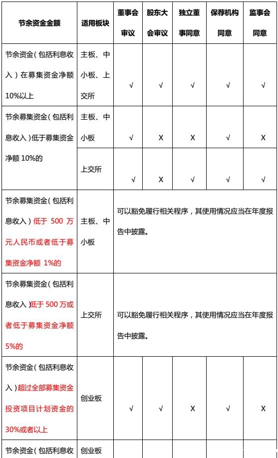 这个要分为两种情形,一种是全部募投项目结项剩余节余资金的使用,另一种是单个募投项目结项剩余节余资金的使用,根据深交所三个板块的《规范运作指引》和上交所的《上海证券交易所上市公司募集资金管理办法》的规定,节余资金的使用应当经过相关审议程序及相关机构同意。